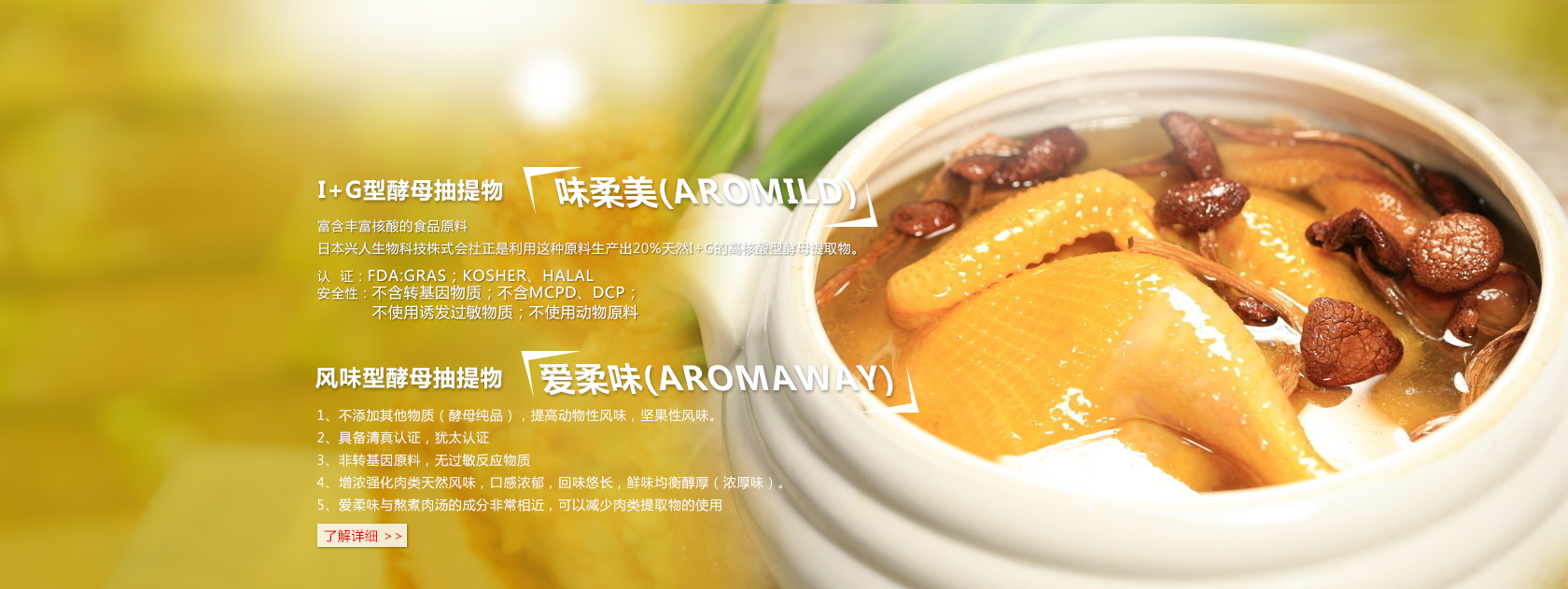 可得然凝膠G的特性與應用酵母精 調(diào)理效果酵母抽提物I+G型-味柔美口酷味特性與應用本味淋的特性與應用